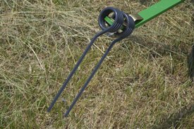 Un colis de déflecteur de roue du marché après-vente installé hors usine contribue à empêcher le foin de se coincer sur les bras à dents de la faneuse TD1316 dans les applications de fenaison légères ou aérées.
