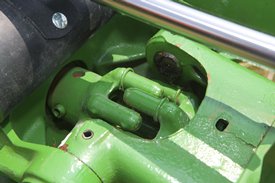 Cette caractéristique permet à l’opérateur de régler l’angle de travail de la faneuse une fois, puis de passer rapidement et facilement de la position de transport à la position de travail à l’aide du circuit hydraulique du tracteur, tout en demeurant confortablement installé dans son siège.